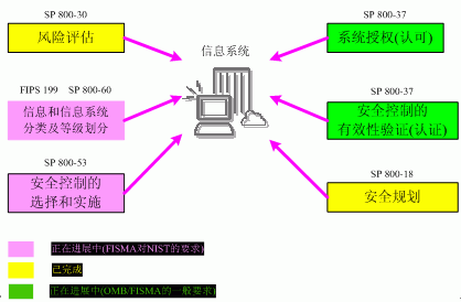 自9.11事件以来,美国政府高度重视信息安全问题。于2002年通过的《联邦信息安全管理法案》(FISMA)规定必须对联邦政府信息系统进行安全评估并备案,为美国政府机构信息系统改善信息安全问题设定了目标,也被称作美国电子政务法案。FISMA为美国联邦政府信息安全设定了目标,却没有规定如何实现这些目标。为此,美国国家技术与标准局(NIST)负责为实现这些目标制定最低的安全要求,NIST因此专门启动了信息系统安全认证认可计划,该计划近期已更名为信息系统安全计划。该计划分为两个阶段,在第一阶段将制定如下的标准和指南:联邦信息和信息系统的分类;联邦信息系统选择和规定安全控制;验证联邦信息系统安全控制的有效性;在第二阶段,将在美国国内建立一个国家级的,由经过认可的机构组成的网络,使这些机构能基于NIST的标准和指南为联邦政府提供经济高效的、高质量的安全评估服务。